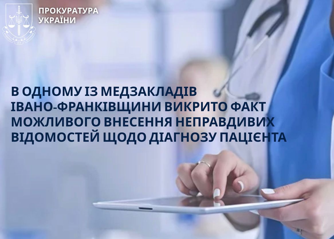 В одному із медзакладів Івано-Франківщини викрито факт можливого внесення неправдивих відомостей щодо діагнозу пацієнта