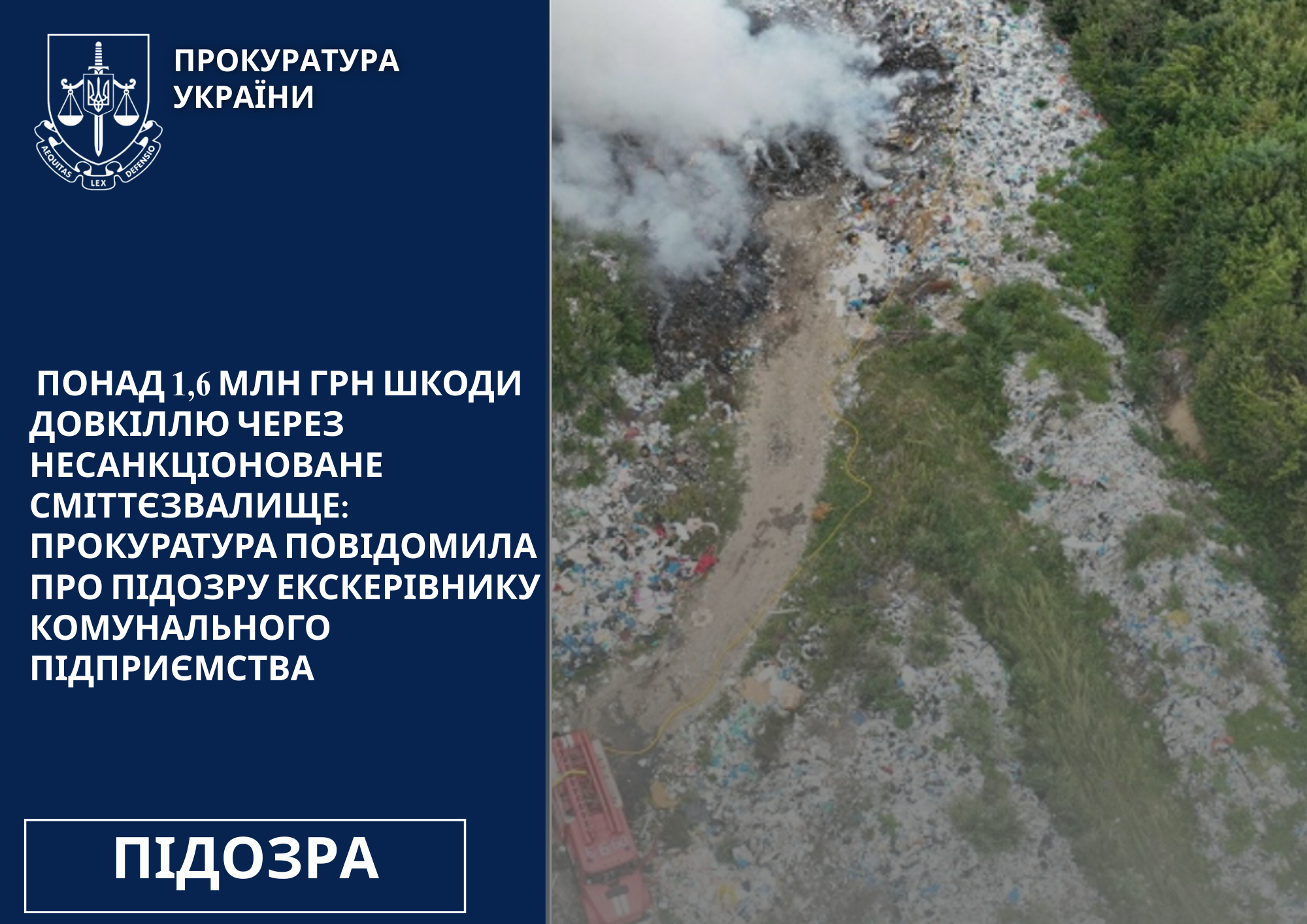 Понад 1,6 млн грн шкоди довкіллю через несанкціоноване сміттєзвалище: прокуратура повідомила про підозру екскерівнику комунального підприємства