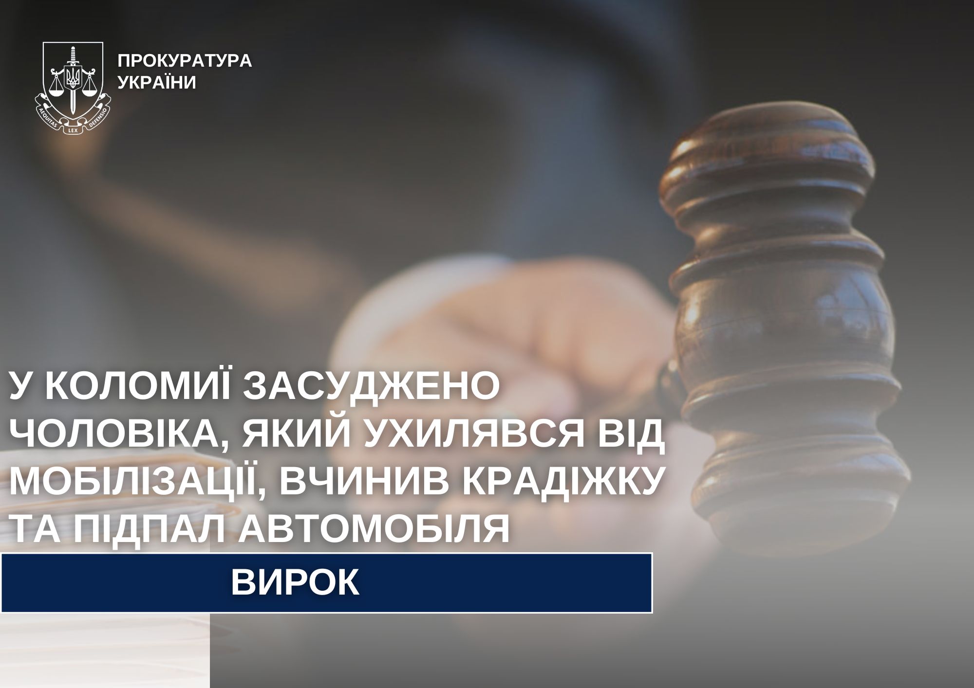 У Коломиї засуджено чоловіка, який ухилявся від мобілізації, вчинив крадіжку та підпал автомобіля